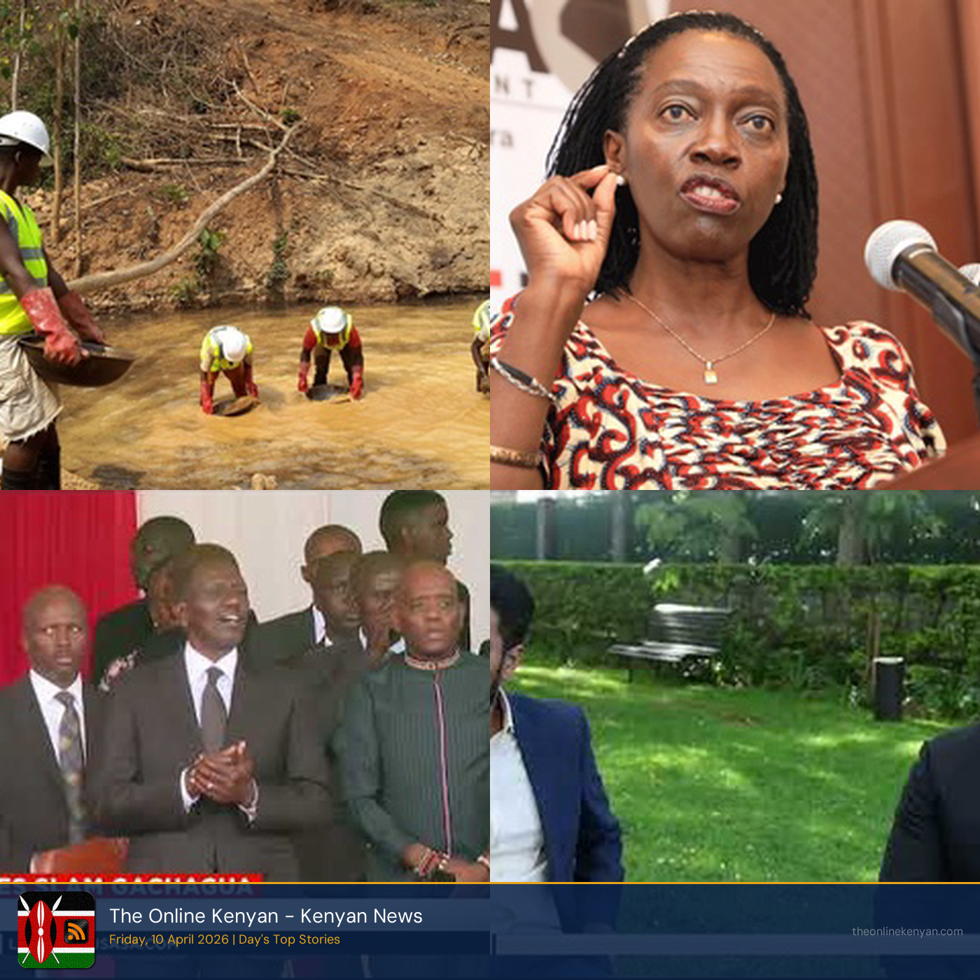 KHRC Alleges Killings in Siaya Gold Mining Dispute: The Kenya Human Rights Commission (KHRC) has accused Kenyan state security agencies and Shanta Gold Kenya Limited of human rights violations following the killing of at least two residents in Ramula, Siaya County on Monday, April 6, 2026. The KHRC is preparing to launch legal action against a gold investor in Ruala, Siaya county, citing alleged oppressive mining operations. Separately, leaders in Kakamega are opposing a gold mining license approval, citing unresolved disputes over land ownership and community benefits. An Australian investor has been defrauded of over KSh 77 million in a sophisticated gold scam while in Nairobi, Kenya. Andrew Gaballa reportedly lost over 77 million Kenyan Shillings after falling victim to a gold scam. Ruto allies condemn Gachagua over tribal remarks: Allies of President Ruto have strongly condemned statements made by former Deputy President Rigathi Gachagua, with lawmakers now pushing for stricter legislation against politicians accused of inciting tribal sentiments. MP Kimani Ichung'wah issued a stern warning to Deputy President Gachagua, predicting a bleak political future for him. Separately, President William Ruto has acknowledged the significant security challenges facing Nairobi, citing the proliferation of criminal gangs as a major concern. Additionally, concerns have been raised regarding the alleged overuse of "goons" to target government critics in Kenya, raising questions about methods employed to silence dissent. Madina Okot targets historic WNBA first-round pick: Kenyan basketball prospect Madina Okot is poised to make history in the upcoming WNBA draft, with projections indicating she could be a first-round pick. Meanwhile, Kenyan steeplechaser Faith Chepkemoi has secured her spot at the 2026 African Championships in Accra, Ghana after a remarkable performance. At the same time, young Kenyan swimmer Andy Konde is set to compete in an upcoming swimming championship, expressing his eagerness to perform well. Kenya's under-17 women's football team, the Junior Starlets, has arrived in Windhoek, Namibia for a crucial FIFA World Cup qualifier match. Australian loses KSh 77M in Nairobi gold scam: An Australian investor has been defrauded of over KSh 77 million in a sophisticated gold scam while in Nairobi, Kenya. Similarly, an Australian businessman, Andrew Gaballa, has reportedly lost over 77 million Kenyan Shillings after falling victim to a gold scam. Leaders in Kakamega are opposing a gold mining license approval, citing unresolved disputes over land ownership and community benefits. The Kenya Human Rights Commission (KHRC) is preparing to launch legal action against a gold investor in Ruala, Siaya county, citing alleged oppressive mining operations. Kindiki faces scrutiny over KSh 8M daily helicopter spending: The Office of the Deputy President is under scrutiny by the Public Accounts Committee of the National Assembly over significant pending bills, including substantial spending on helicopter services. A new report from the Ethics and Anti-Corruption Commission (EACC) has revealed that magistrates are topping the list of public officials implicated in corruption cases, with offenses predominantly involving bribery and ethical misconduct. Separately, the Kenya National Gender and Corruption Survey 2025 highlights a disturbing trend of widespread bribery and a significant lack of reporting among Kenyans. Opposition demands CS Omollo resignation after Osotsi attack: Opposition leaders are demanding the resignation of Cabinet Secretary Raymond Omollo following an attack on nominated MP Hon. Opiyo Wandayi in Kisumu. The Directorate of Criminal Investigations (DCI) has apprehended three suspects in connection with the assault and injury of Senator Osotsi in Kisumu. Fear grips villages in Lamu County after a surge in machete-wielding youth gangs, with a recent attack claiming one life and leaving six others injured.